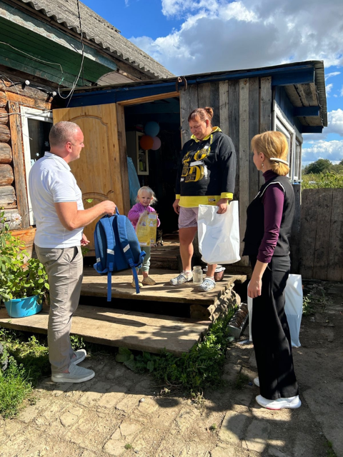 Накануне Дня знаний Глава муниципального образования «Сычевский муниципальный округ» Татьяна Павловна Васильева вместе с Депутатом Смоленской областной Думы Сергеем Сергеевичем Шелудяковым побывали в деревнях Лукино и Ольховцы. Там они навестили многодетные семьи, где папы сейчас находятся в зоне проведения специальной военной операции. Мамы стараются изо всех сил, чтобы собрать детей в школу. Семилетний Рамиль уже мечтает о первом уроке и обещает учиться на отлично, а Дима, хоть и отметил недавно день рождения, еще не торопится в школу.