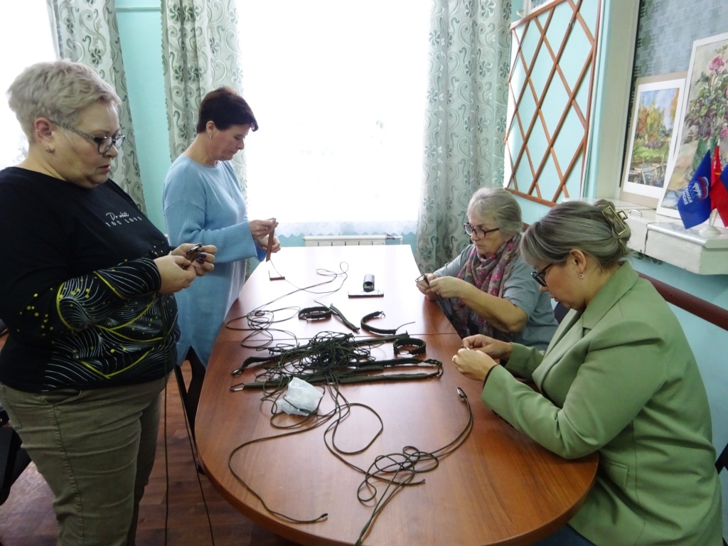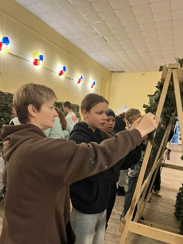 В домах культуры, образовательных учреждениях собираются волонтеры. Здесь кипит своя, «тихая» работа — плетение маскировочных сетей. Женщины, подростки, пенсионеры часами вплетают в основу лоскуты ткани, создавая надежное укрытие для наших позиций. Эта кропотливая работа — настоящий акт заботы, где каждый узелок — это пожелание вернуться домой живым и невредимым.