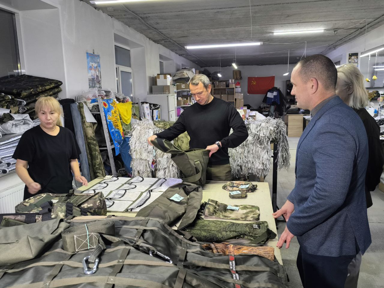 Также посетили волонтёрское объединение «Ваш тыл 67», где в собственной швейной мастерской изготавливают более 50 видов необходимых вещей для бойцов: от маскировочных сетей и костюмов до медицинских рюкзаков и носилок. Волонтёры также собирают гуманитарную помощь и доставляют её в зону СВО.