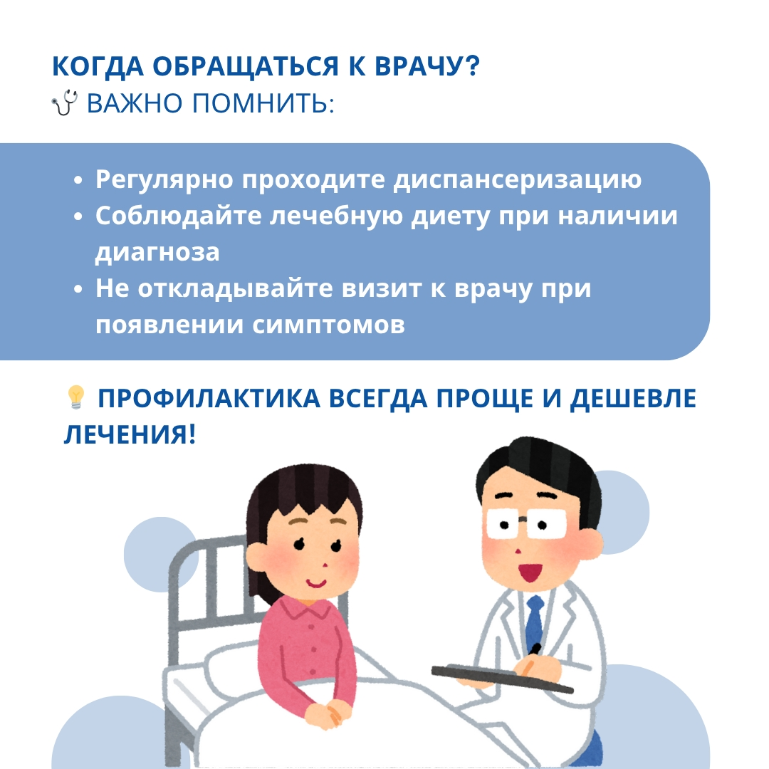 ✔ Регулярно проходите диспансеризацию и обращайтесь к врачу в случае появления симптомов нарушения работы ЖКТ.