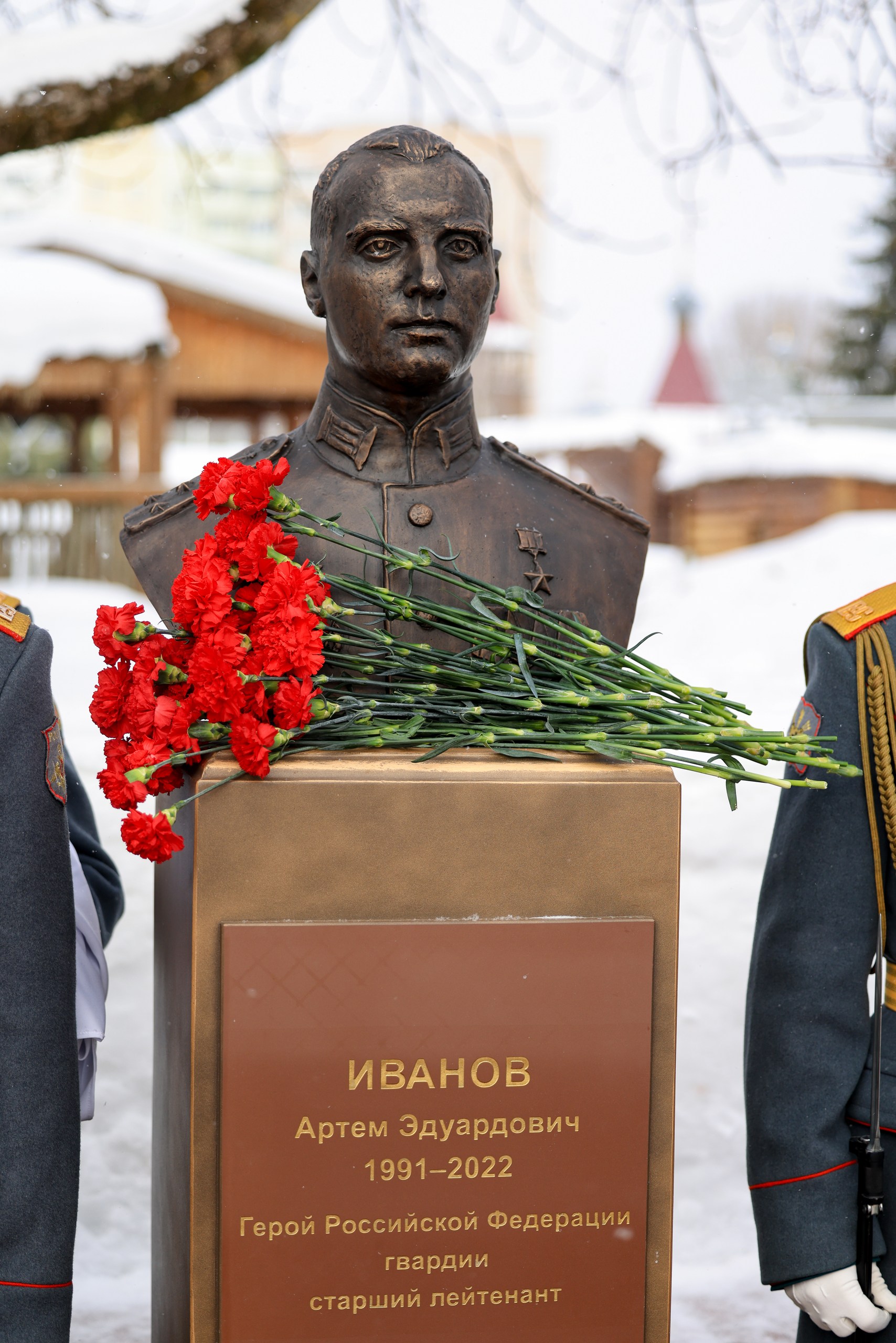 Также состоялась торжественная церемония открытия бюста Героя Российской Федерации Артема Эдуардовича Иванова. В ходе боя гвардии старший лейтенант спас раненого водителя и обеспечил выполнение боевых задач. Артем Эдуардович Иванов занимает достойнейшее место в ряду славных героев, чьи имена навечно вписаны в историю Отечества.
