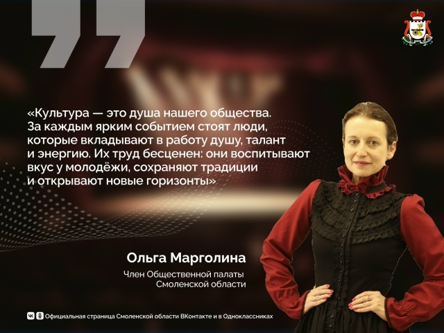 Смоленская область активно поддерживает культуру на местах. В регионе сохраняют традиции, помогают учреждениям культуры, создают условия для самореализации творческой молодёжи.